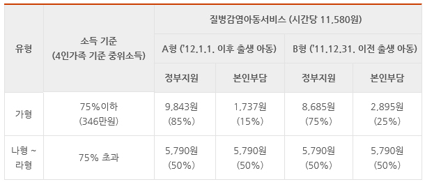 - 법정 전염성 및 유행성 질병에 감염된 만 12세 이하 사회복지시설, 유치원, 초등학교, 보육시설등 이용 아동