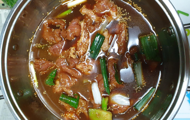 갈비 양념?으로 추정되는 국물도 많아서 집에 있는 냄비에 한번에 조리가 불가능할 정도였습니다.