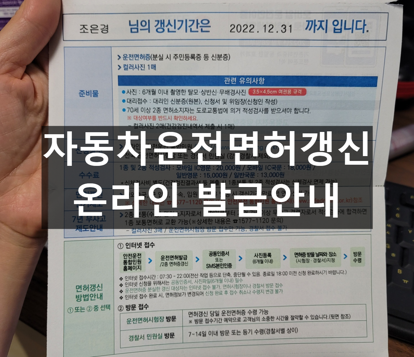 22년 12월 31일까지가 갱신기간이라며 운전면허증 갱신하라는 우편물이 날라왔습니다.