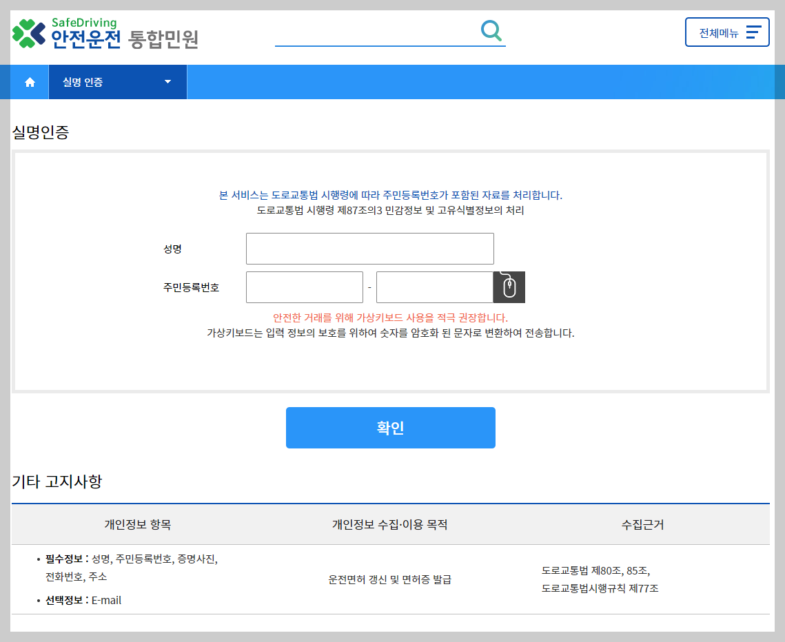 안전운전 통합민원 (http://www.safedriving.or.kr) 사이트에 접속을 합니다.