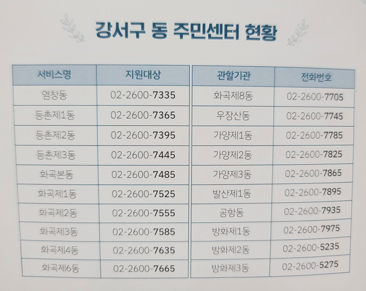 강서구 동 주민센터 연락처도 알려드릴께요!