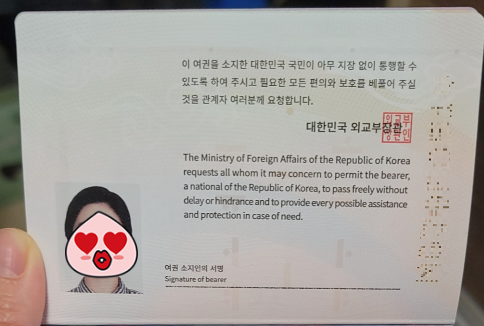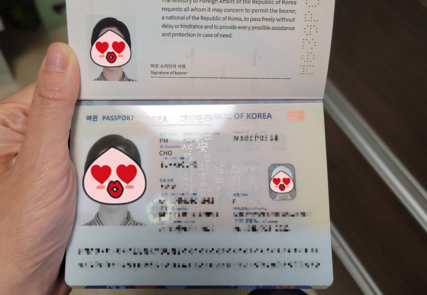 기존 여권과 다르게 사진은 2면에 모두 나와있고, 사진에서 윗부분은 종이재질이며 아랫부분은 두꺼운 플라스틱 재질이에요. 기간만료나 생년월일 부분이 영어와 한국어 모두 나와있어서 보기에는 더 편했어요.