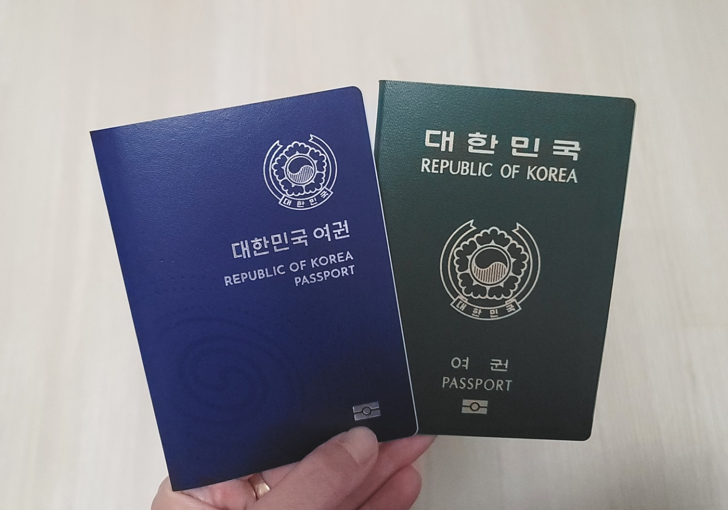 제껀 왼쪽 파란색의 전자여권이고 아이들껀 오른쪽 초록색 구 여권이에요.