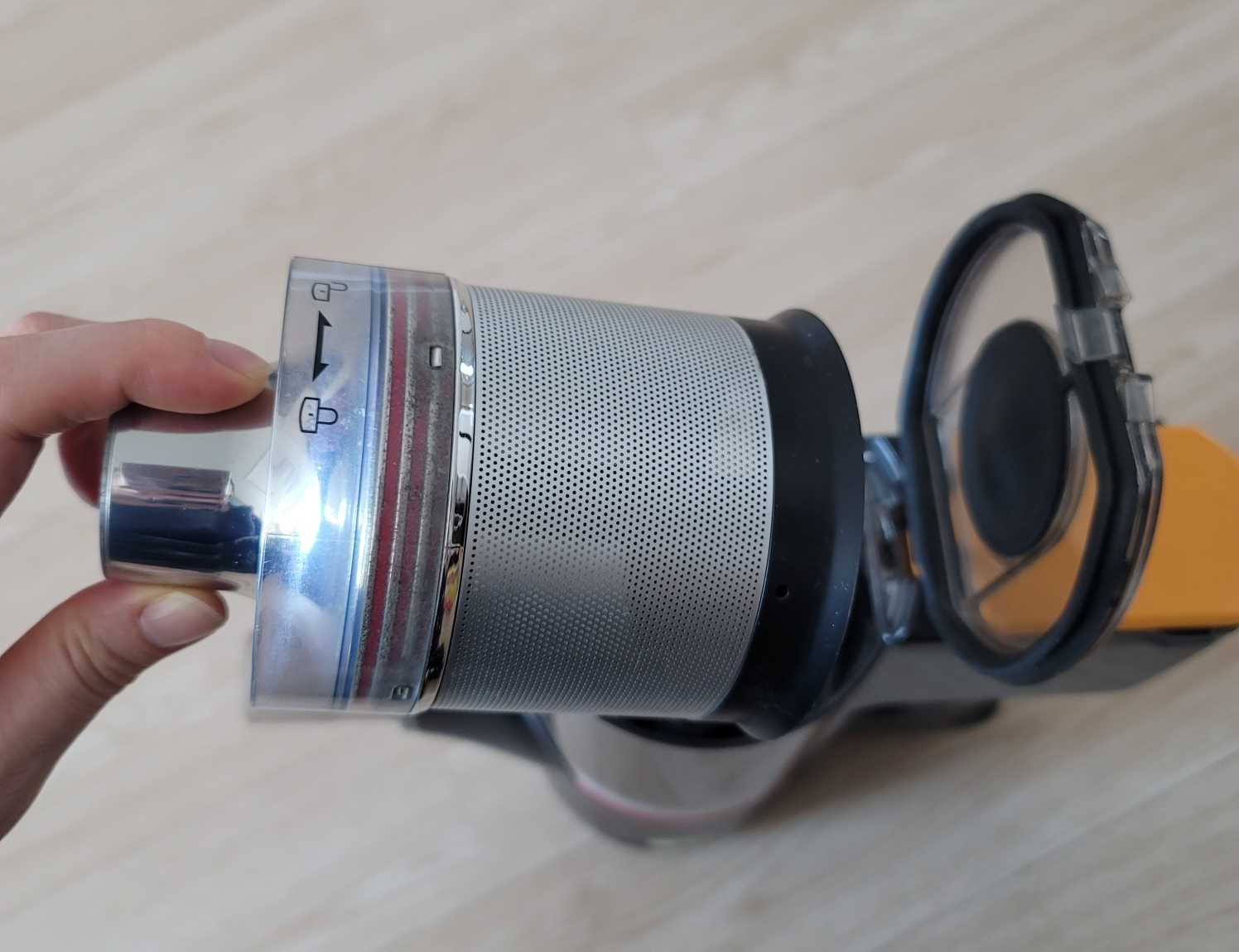 청소기통 안에 제일 먼저 있는것은 손으로 돌리면 쉽게 빠지니 돌려서 물로 세척해둡니다.