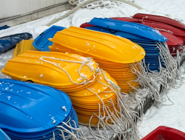 그 앞으로는 그냥 썰매만 탈수 있게 되어 있어서 어린아이들은 옆에 쌓여있는 썰매를 가져다가 이곳에서 썰매를 타고 놀아도 될 것 같아요. 부모가 계속 끌어줘야 한다는 단점이 있긴 하지만요..... ㅎㅎ