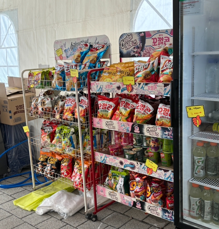간단히 먹을 수 있는 분식들과 과자 음료수등이 있었어요.