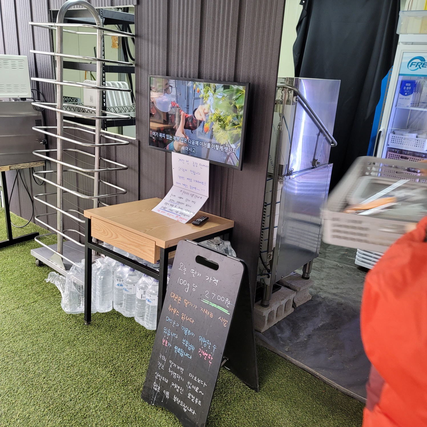 카운터 옆에는 오늘딸기 가격이 적혀진 팻말과 그위로 영상이 재생되고 있어요. 딸기를 따는 방법을 알려주는 영상이니 보고 가시면 처음 방문하시는 분들은 쉽게 따실 수 있을꺼에요.